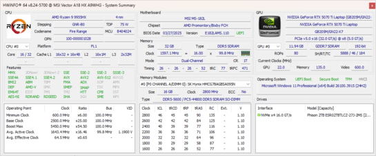 | MSI Vector A18 HX A9W AMD Ryzen 9 9955HX ⎘ NVIDIA GeForce RTX 5070 Ti Laptop ⎘ 32 GB Geheugen | Amazon: $4,799.00 Catalogusprijs: 3200 USD | 3.5 kg | 32.05 mm | 18.00" 2560x1600 189 PPI IPS | |