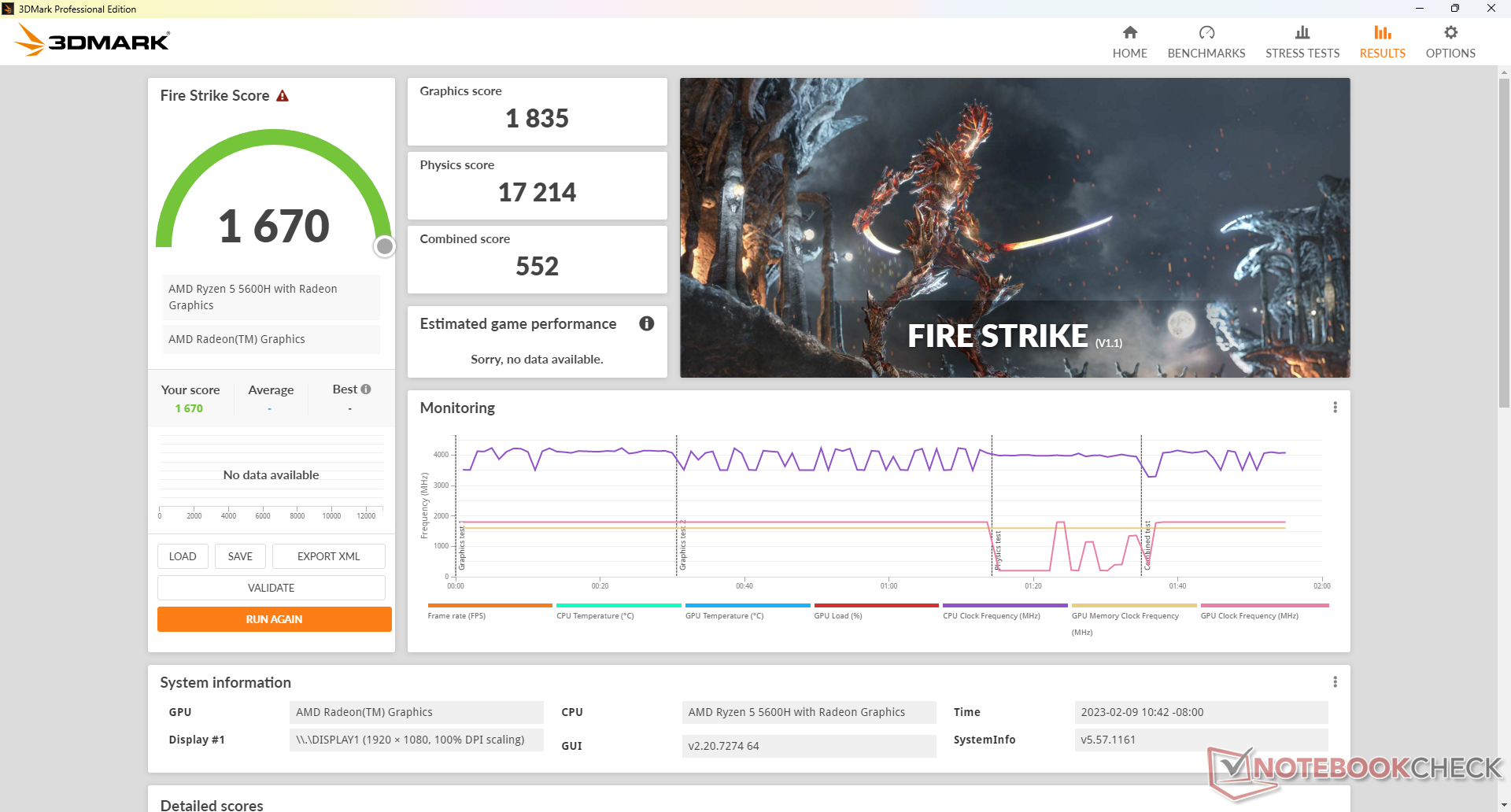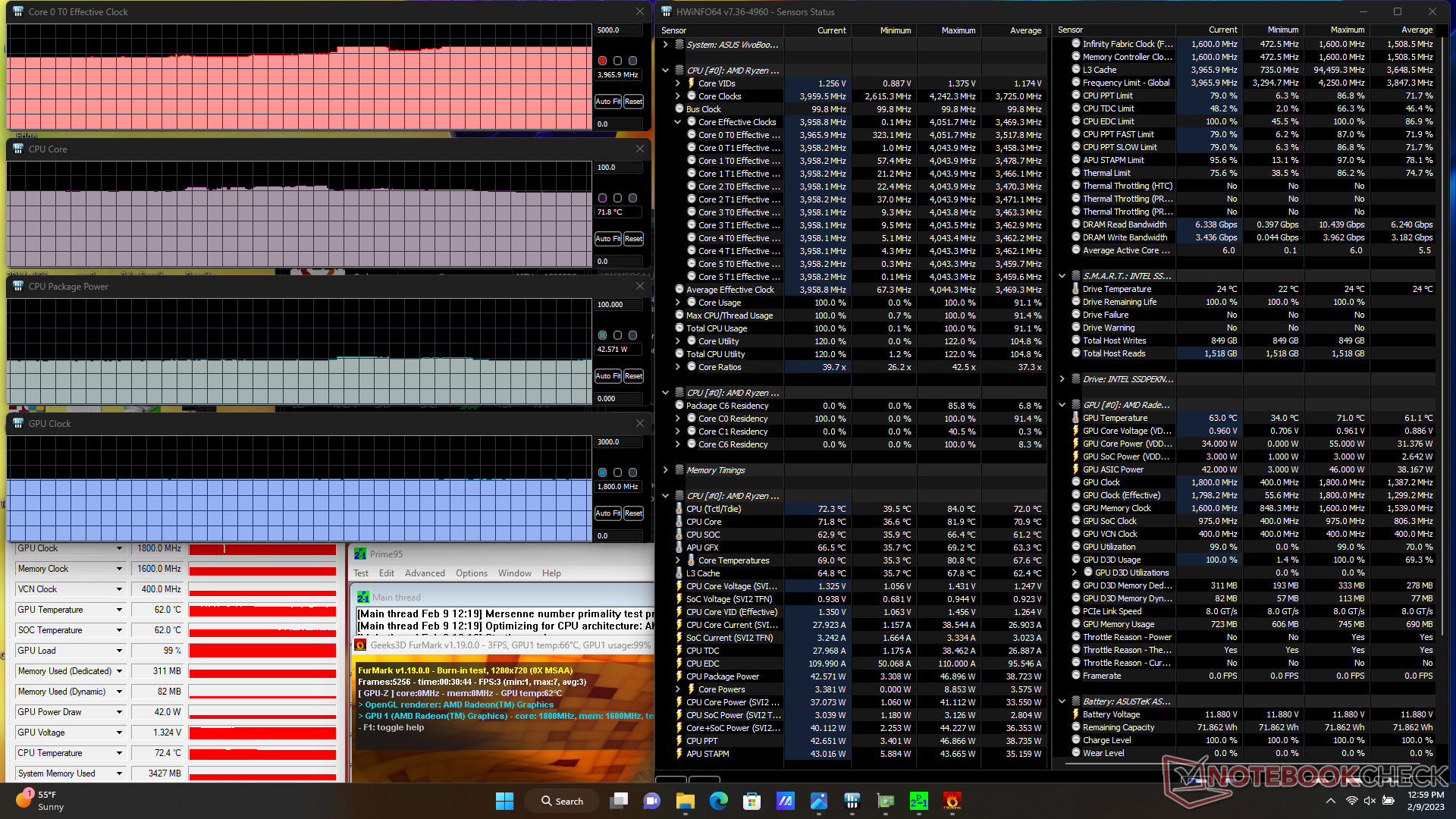 GPU kloksnelheden en temperatuur zou stabiliseren op 1800 MHz en een relatief koele 55 C in vergelijking met 78 C op de kleinere 14-inchVivoBook S 14X. Dit laatste model biedt echter snellere grafische prestaties dan ons beoordeelde apparaat.