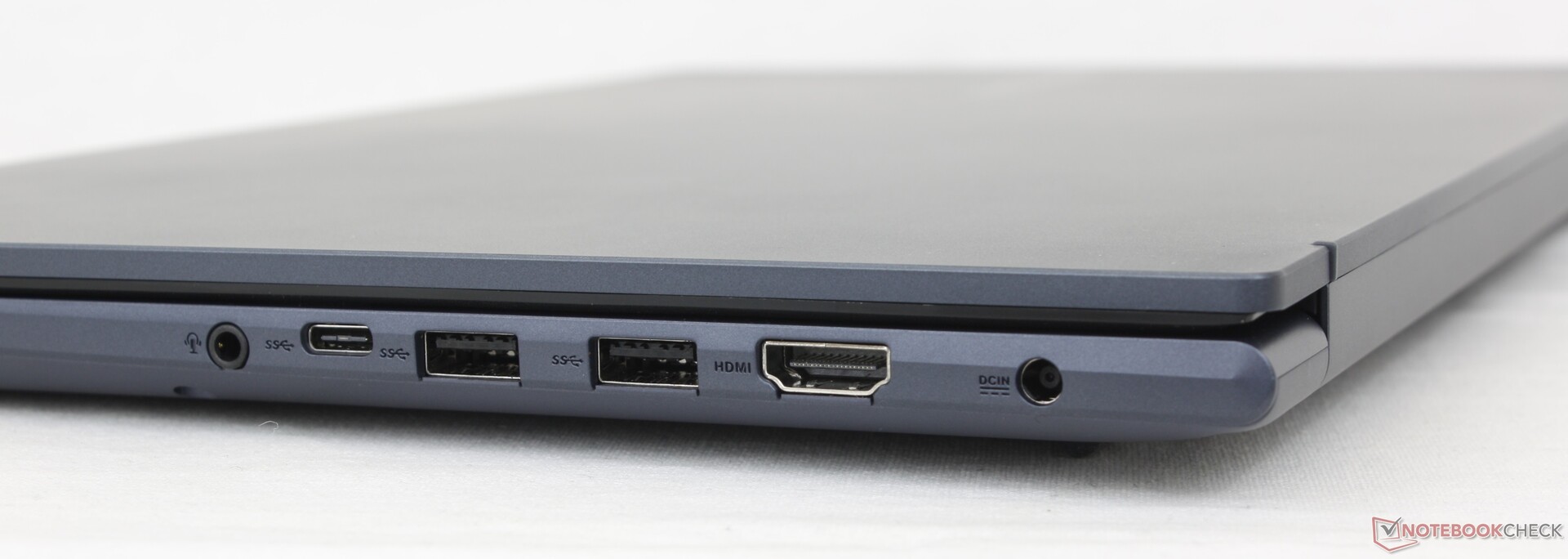 De poortopties verschillen enigszins tussen de vele VivoBook modellen. In dit geval lijken de poorten van onze VivoBook 15X M1503QA het meest op die van de 14-inchVivoBook S 14X S5402Z behalve met een extra USB-A poort en een USB-C poort minder. Houd in gedachten dat de USB-C poort hier geen Thunderbolt, Power Delivery, of zelfs DisplayPort ondersteunt, terwijl de meeste andere Ultrabooks met USB-C de neiging hebben om ten minste een van de drie te ondersteunen.