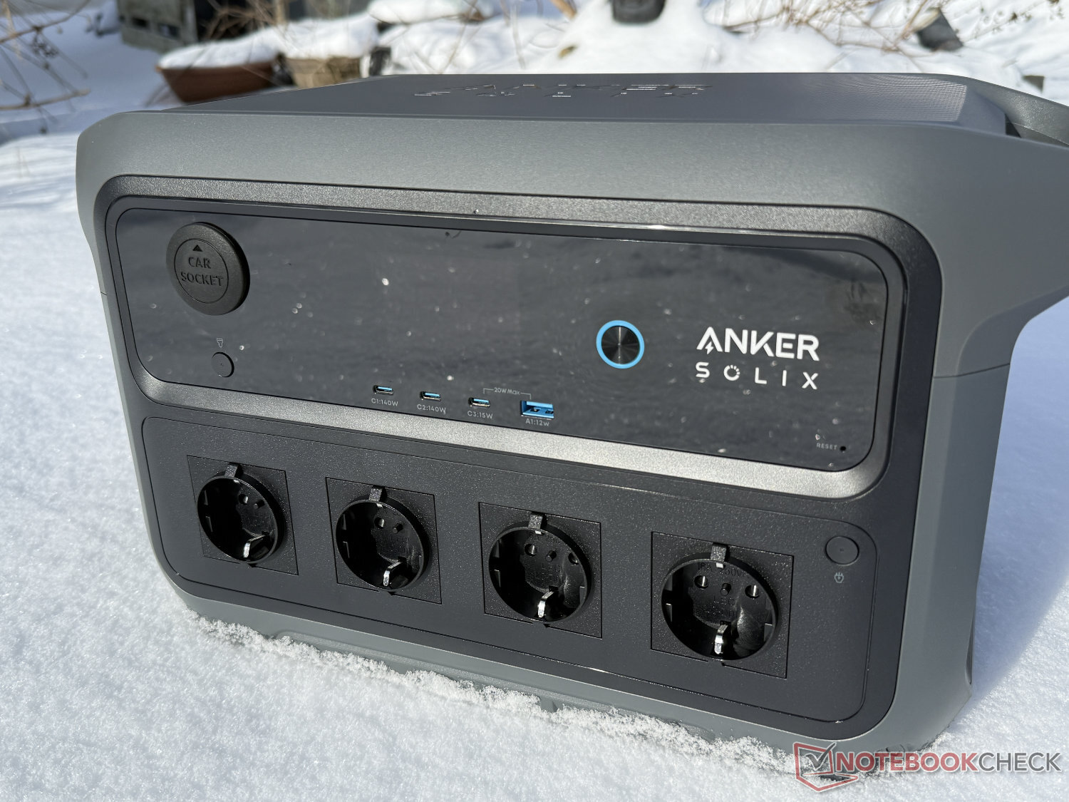 Aan de andere kant biedt de Solix C2000 Gen 2 een aantal verbeteringen naast zijn voeding. Hoewel hij nog steeds 2400 W continu vermogen levert (net als de F2000), kan hij nu pieken aan tot 4000 W (in plaats van 3600 W). Stroom wordt nu geleverd via vier AC-aansluitingen, drie USB-C-aansluitingen (2x tot 140 W), één USB-A-aansluiting (max. 12 W) en een 12V-auto-aansluiting met 120 W. Volgens de fabrikant zijn de ingebouwde LFP-cellen nog duurzamer met 4.000 cycli tot 80 procent capaciteit en reageert de UPS-functie twee keer zo snel.