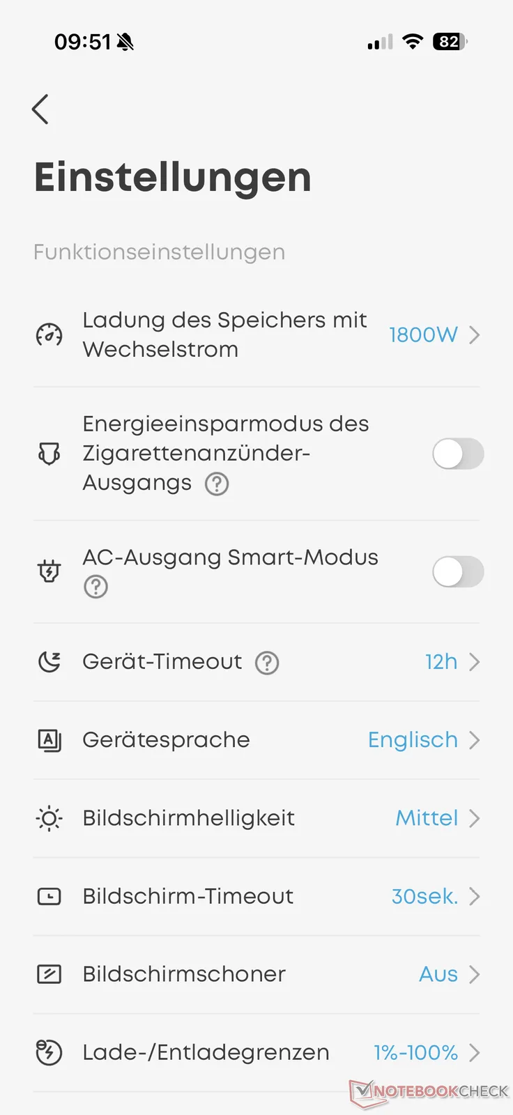 Echter, hoe hoger het AC-vermogen, hoe effectiever de C2000 Gen 2 werkt (net als veel andere energiecentrales). er kan 1.800 W wisselstroom uit de centrale worden gehaald, waardoor er ongeveer 1.850 Wh bruikbaar is. Dat is een goede 90 procent en een opmerkelijke waarde. Tijdens het opladen met wisselstroom, dat met maximaal 2300 W in iets meer dan een uur kan gebeuren (afhankelijk van het ingestelde maximale vermogen), registreerde het meetapparaat een verbruik van bijna 2350 Wh. De accu van 2.048 Wh werd dus voor 87 procent gebruikt.