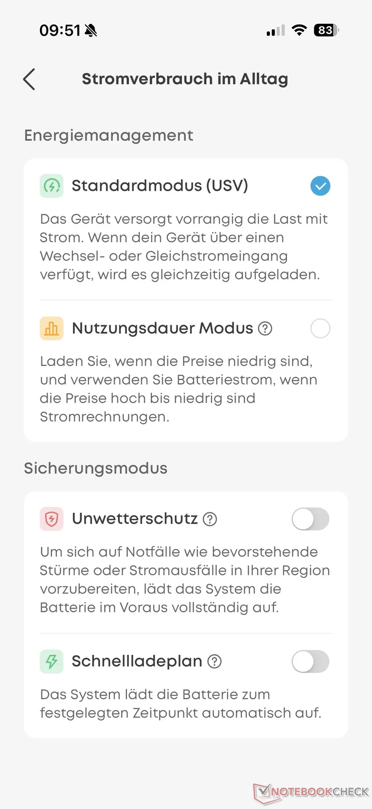 Hoewel we het misten op de F3000is de C2000 Gen 2, net als de C1000 Gen 2verschillende modi. De centrale kan bijvoorbeeld worden ingesteld om automatisch op te laden op momenten dat de energiekosten bijzonder gunstig zijn, in combinatie met een dynamisch elektriciteitstarief. Er is echter nog steeds geen directe aansluiting.
