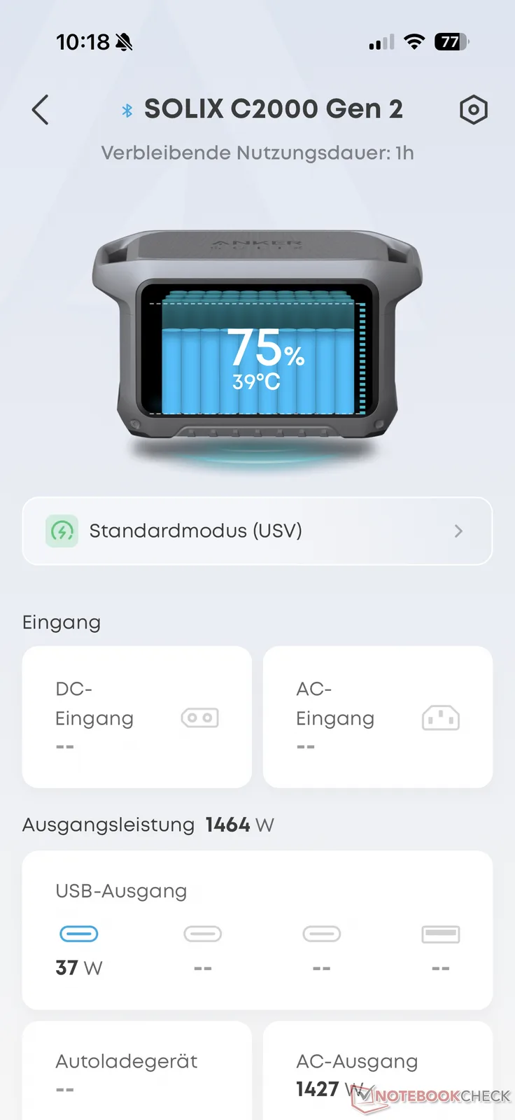We waren echter niet helemaal overtuigd van de efficiëntie van de AC-werking in de test. Zoals gebruikelijk hebben we de Anker Solix C2000 Gen 2 tijdens onze test met een continue belasting van ruim 200 W getest. We waren in staat om een goede 1600 Wh van de 2.048 Wh capaciteit op te nemen. Dit resulteert in een bruikbare energie van iets minder dan 79 procent, wat geen goede waarde is. Hier is bijvoorbeeld de goedkopere Aferiy P280 in de test productiever gebleken.