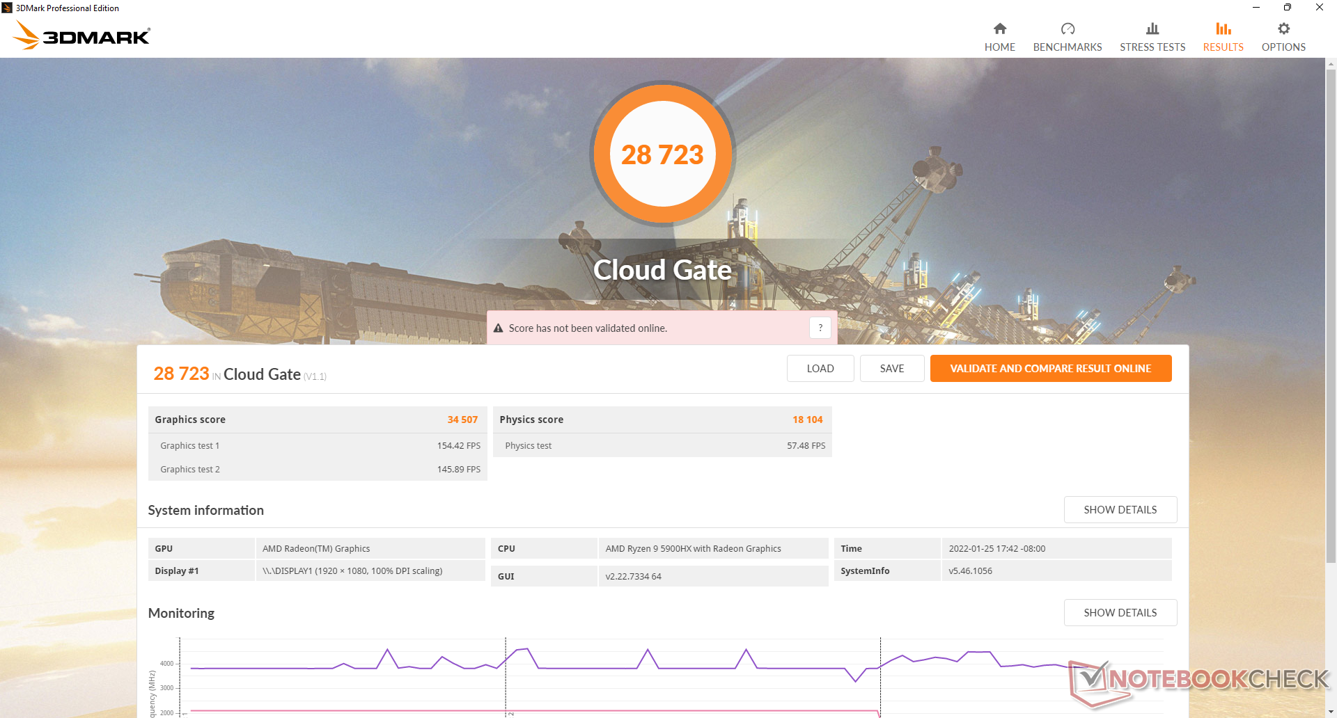 | 3DMark Cloud Gate Standard Score | 28723 punten | |