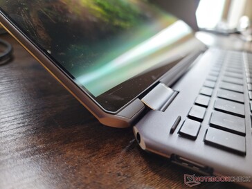 HP heeft het 2020 ontwerp vernieuwd voor de deze 2022 refresh. De meeste veranderingen zijn echter grotendeels oppervlakkig en met kleine interne veranderingen. Gebruikers kunnen het 2022 model gemakkelijk onderscheiden van de 2020 versie door de rondere randen en hoeken, de andere toetsenbordindeling en de herplaatste poorten. Voor de rest blijft de stevigheid van het chassis net zo sterk als voorheen, voor een luxueuze indruk en gevoel. We waarderen vooral hoeveel meer bruikbaar en sterker het HP ontwerp is in vergelijking met de gesloten Surface Laptop 4 13 en meer krakende Framework Laptoprespectievelijk.