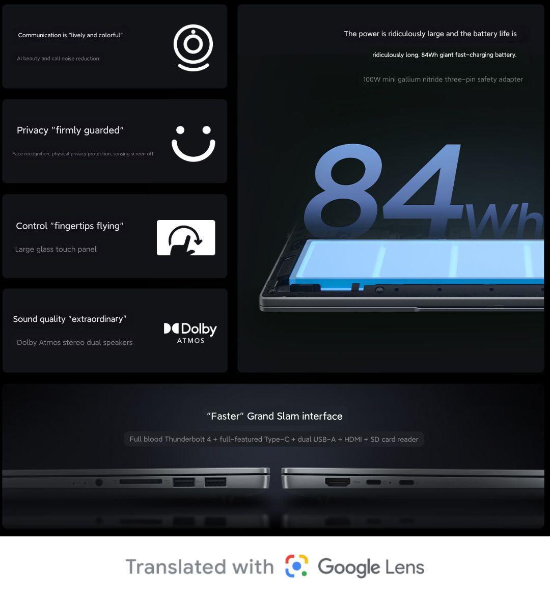 We zien ook dezelfde 84 Wh batterij in de Core Ultra 9-variant van de 2024 Lenovo Xiaoxin Pro 14. Andere hoogtepunten zijn Dolby Atmos stereoluidsprekerseen uitgebreide set I/O met een Thunderbolt 4 poort, en een slank en licht chassis. De vooruitbestellingsprijs voor de laptop is CNY 6.599 (ongeveer $920), en hij gaat op 18 maart in de verkoop. Er is nog niets bekend over het internationale debuut, maar het bedrijf geeft Chinese Xiaoxin-modellen meestal een nieuwe naam als IdeaPad-laptops (IdeaPad Flex 5 op dit moment $596,47 op Amazon) voor de wereldwijde markt.