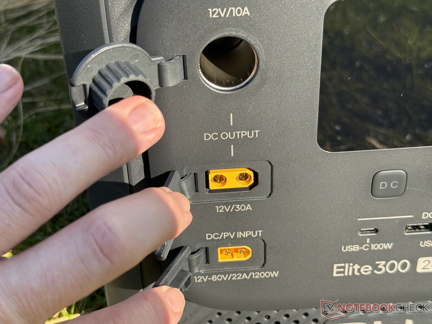 Met elk drie stopcontacten hebben beide één stopcontact meer dan de nieuwe concurrent van Bluetti. Naast de gebruikelijke 12 V voertuigaansluiting biedt de Elite 300 een gelijkstroomaansluiting met 12 V en een hoge 30 A, die niet elke zonnegenerator aan boord heeft. Dit is bijvoorbeeld praktisch voor kampeerders, om tot 360 W te leveren zonder omvormerwerking.