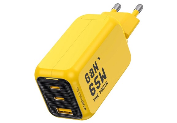 Hoe dan ook, de nieuwe Aohi Youth PD PPS 65W 3-poorts opvouwbare lader valt visueel op, aangezien de meeste andere producten in deze categorie grijs of zwart zijn. Deze heeft een opvallend geel ontwerp, maar het EU-model is eigenlijk niet opvouwbaar, wat in tegenspraak is met de eigen productnaam. Alleen de Amerikaanse versie kan opgevouwen worden om de afmetingen voor transport en opslag te verkleinen. Dat gezegd hebbende, de 65-watt lader is relatief compact en meet 72 x 43 x 35 mm.