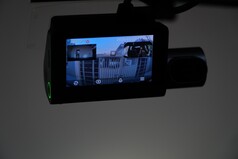 Aan de achterkant van de hoofdcamera bevindt zich een 3-inch IPS LCD-scherm met een resolutie van 640 x 360 pixels. Bovendien zitten er vier knoppen onder het scherm, waarmee u de dashcam verder kunt bedienen. Aan de zijkant van de behuizing vindt u een microSD-kaartsleuf en een aan/uit-knop met een LED-indicator waarmee u de dashcam handmatig kunt in- of uitschakelen.