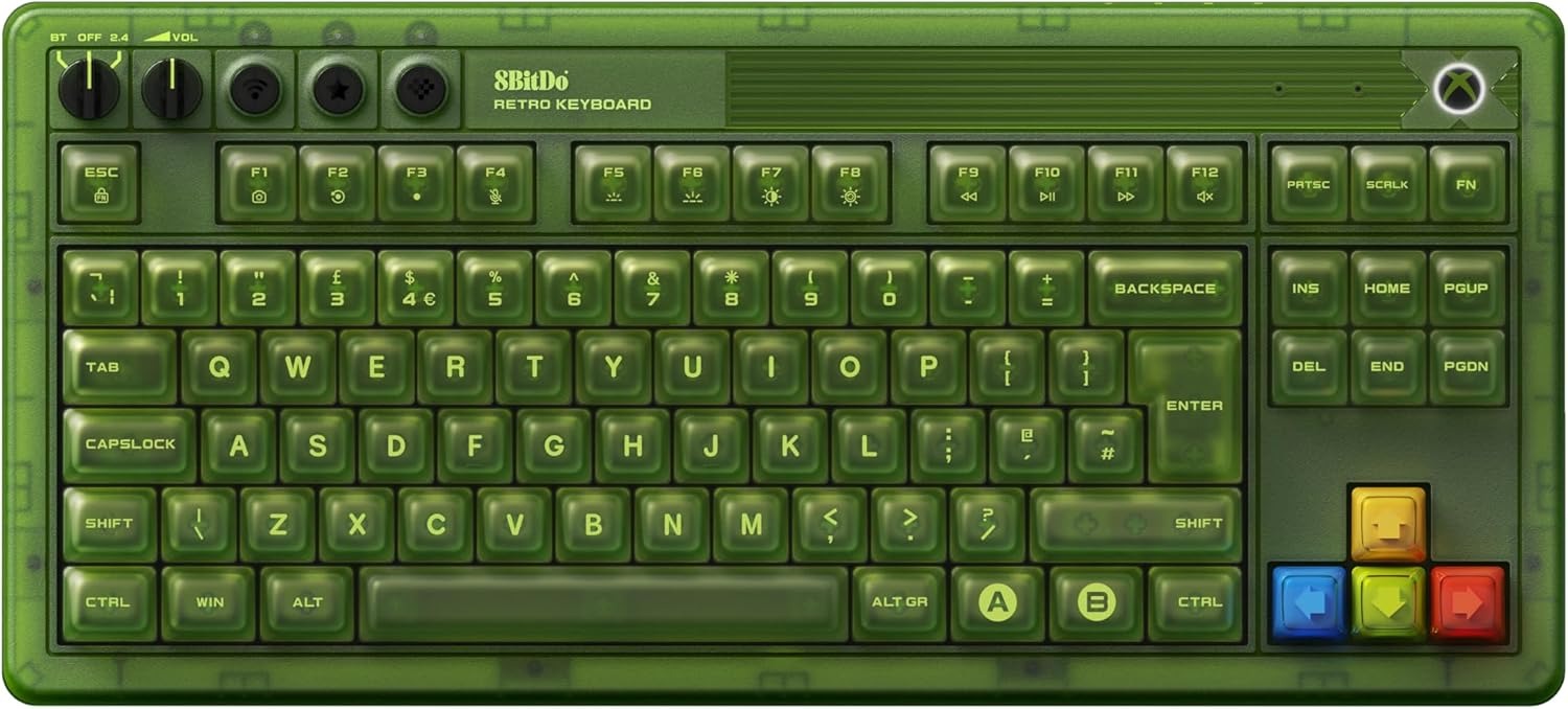 Naast de VS (QWERTY) is het 8BitDo Retro 87 Mechanisch Toetsenbord Xbox Edition nu verkrijgbaar in de indelingen UK (QWERTY), DE (QWERTZ), FR (AZERTY) en ES (QWERTY). Het Retro 87-toetsenbord met een ISO UK-indeling kost £105 op Amazon, wat iets meer is dan de versie met een Amerikaanse indeling, die een catalogusprijs van £99.99 heeft maar momenteel beschikbaar is voor £96.29.