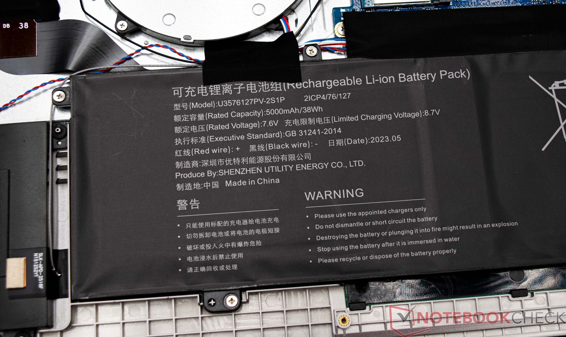De ACEMAGIC Ace AX15 heeft een batterij van 38 Wh, wat een relatief kleine krachtpatser is. Ons reviewtoestel moest zijn nederlaag toegeven in een vergelijking met de Lenovo IdeaPad 3 en zijn identiek grote batterij. In onze Wi-Fi-test (het laden van websites met behulp van een script) hebben we een werktijd van 5 uur en 44 minuten gemeten. Dit is echter geschikt voor thuisgebruik.
