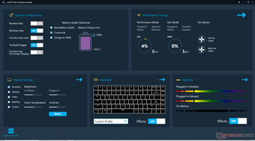 Het draaien op batterijvermogen zal de prestaties beperken. Een Fire Strike run op batterijen zou Physics en Graphics scores van 19060 en 18191 punten, respectievelijk, in vergelijking met 22616 en 26907 punten wanneer op netvoeding.