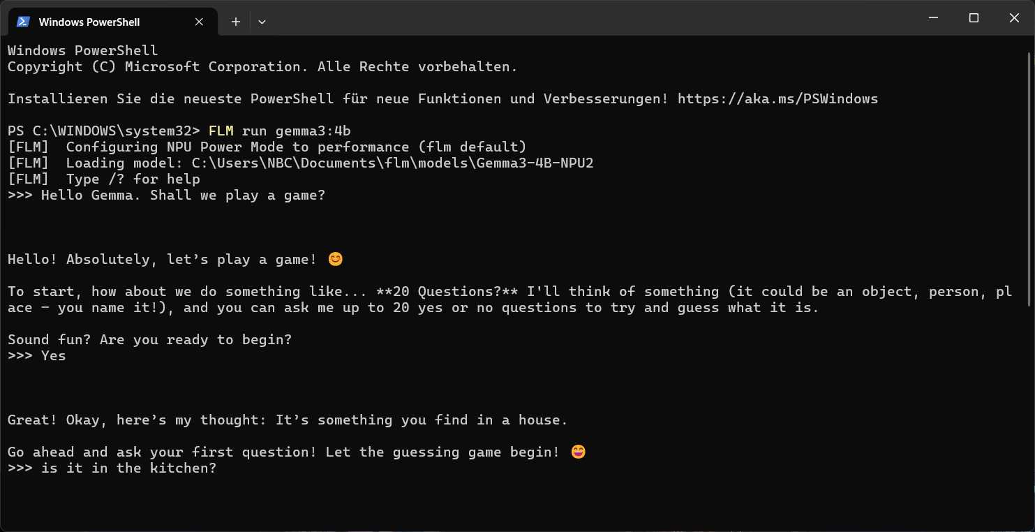 Wie LM Studio op reis gebruikt, moet helaas rekening houden met een snel lege batterij. LM Studio gebruikt zowel CPU als GPU voor alle berekeningen. De energiezuinige NPU in onze Ryzen 7 350 werd helaas ongemoeid gelaten. FastFlowLM laat u profiteren van de NPU-prestaties van de AMD-chip. Dit gaat gepaard met een aanzienlijk lager stroomverbruik, ondanks dat de LLM's niet merkbaar langzamer lopen op de NPU. De kwaliteit van de uitvoer blijft ongewijzigd. FastFlowLM is echter iets moeilijker te gebruiken dan LM Studio, omdat het geen eigen grafische gebruikersinterface heeft. Een GUI voor FastFlowLM kan worden verkregen via Open WebUI. Anders wordt het gebruikt via Windows PowerShell. Hoewel dat een unieke ervaring zou kunnen zijn.