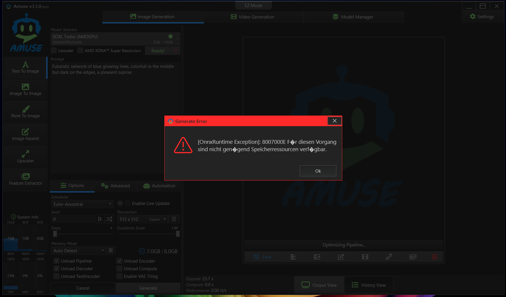 Uiteindelijk staat AI nog in de kinderschoenen. Software die gemakkelijk te gebruiken is en de mogelijkheden van de AMD NPU benut, bestaat nog niet. Dat is jammer, want de prestaties die we met wat sleutelen konden bereiken waren bijzonder indrukwekkend. Zelfs Amuse toont veelbelovende mogelijkheden op de laptop, maar naar onze smaak genereert het te veel foutmeldingen en is het soms behoorlijk traag.