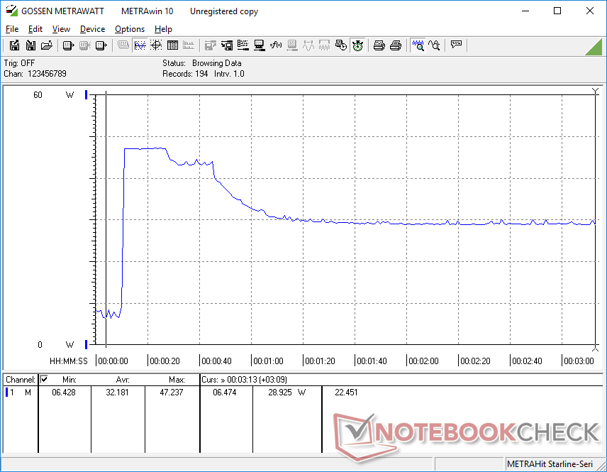 Het stroomverbruik is slechts marginaal hoger dan bij de Ryzen 5 5500U configuratie, hooguit een of twee watt. In het algemeen is het systeem meer energieverslindend dan een Tiger Lake-U Core i5 of Core i7 Ultrabook zoals de Acer Spin 3 SP313 terwijl de grafische prestaties iets minder zijn en de multi-thread CPU prestaties hoger.