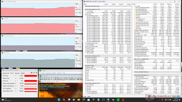 Bij het uitvoeren van Prime95 om de CPU te belasten, piekten de kloksnelheden en het opgenomen vermogen op het bord naar respectievelijk 4,1 GHz en 48 W, wat slechts enkele seconden duurde. Kloksnelheden en stroomverbruik zouden zich uiteindelijk stabiliseren op 3,5 GHz en 37 W om een redelijke kerntemperatuur van 77 C te handhaven. Het uitvoeren van dezelfde test op het model van vorig jaar met de Ryzen 7 5700U zou resulteren in langzamere stabiele kloksnelheden en vergelijkbare temperaturen van respectievelijk 3,1 GHz en 78 C. Het nieuwere model kan dus sneller draaien zonder heter te worden.