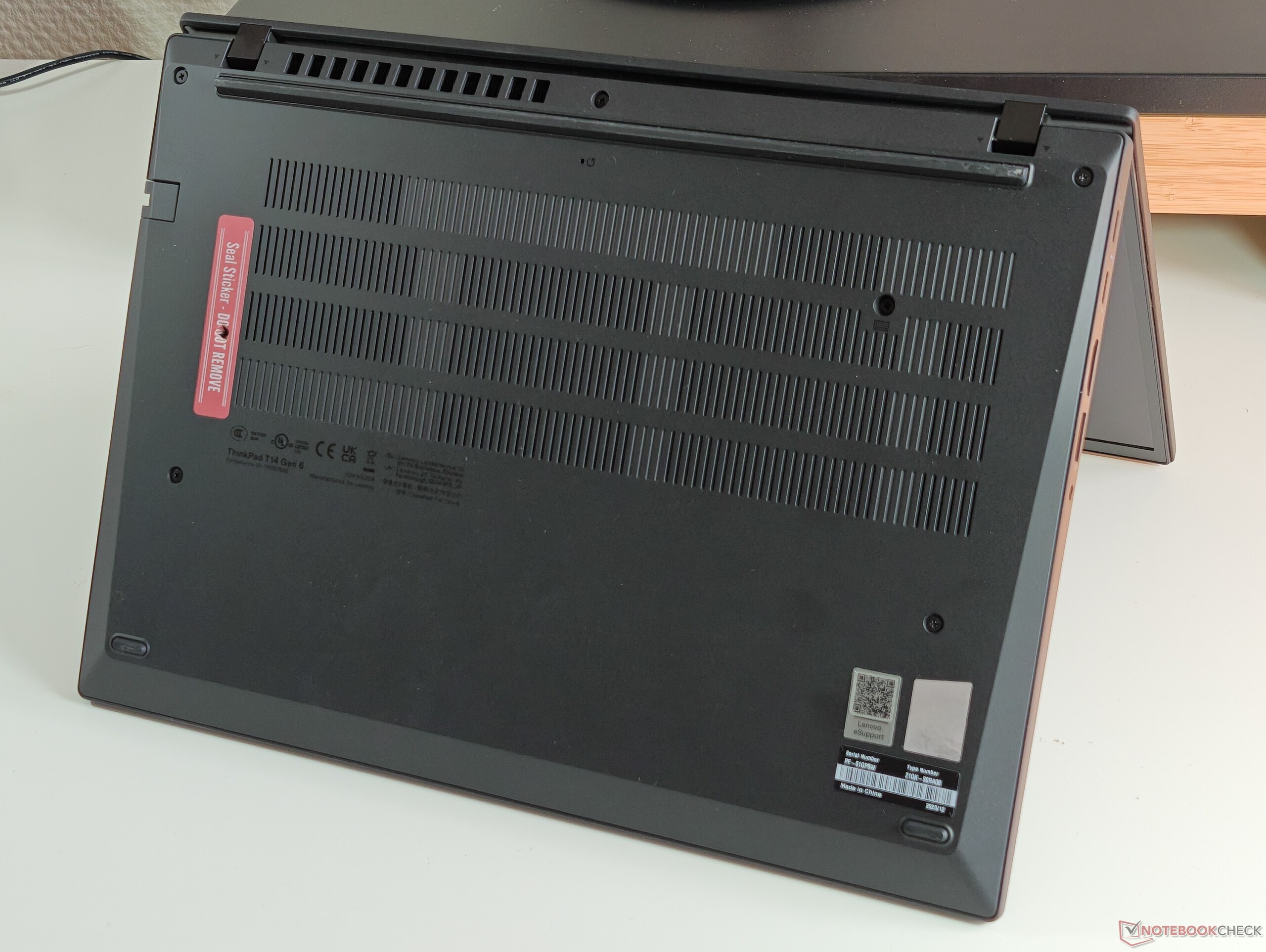 Vergeleken met de oudere Lenovo ThinkPad T14 Gen 5 AMDis de selectie van poorten ongewijzigd gebleven. Hetzelfde geldt voor de interne lay-out, wat betekent dat belangrijke onderdelen zoals het toetsenbord, de batterij, SSD en RAM gemakkelijk door de gebruiker kunnen worden onderhouden.