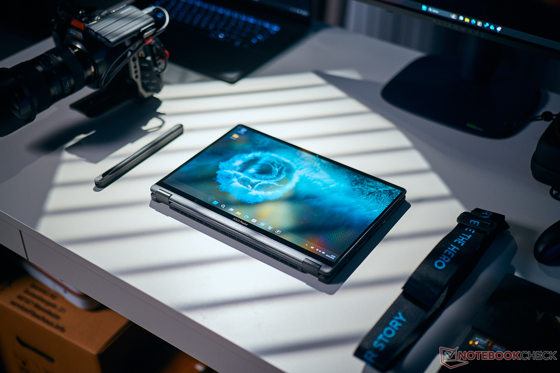 De type-ervaring is opnieuw zeer comfortabel dankzij de royale toetsaanslag van 1,7 mm en de heldere feedback die vergelijkbaar is met die van het vorige model. De GoPro-editie krijgt een nieuwe speciale toets die automatisch de GoPro viewer start en de toetsenbordverlichting is blauw. Het clickpad werd ook licht aangepast. Het DialPad-wiel in de linkerbovenhoek is nog steeds gemakkelijk te gebruiken, maar mechanische klikken zijn erg diep en vereisen enige kracht, waar u even aan moet wennen. U kunt natuurlijk ook het capacitieve touchscreen gebruiken. De nieuwe Asus Pen 3.0 met 4096 drukniveaus (en een handig oplaaddock) ligt goed in de hand en ondersteunt het nieuwste MPP 2.6 protocol.