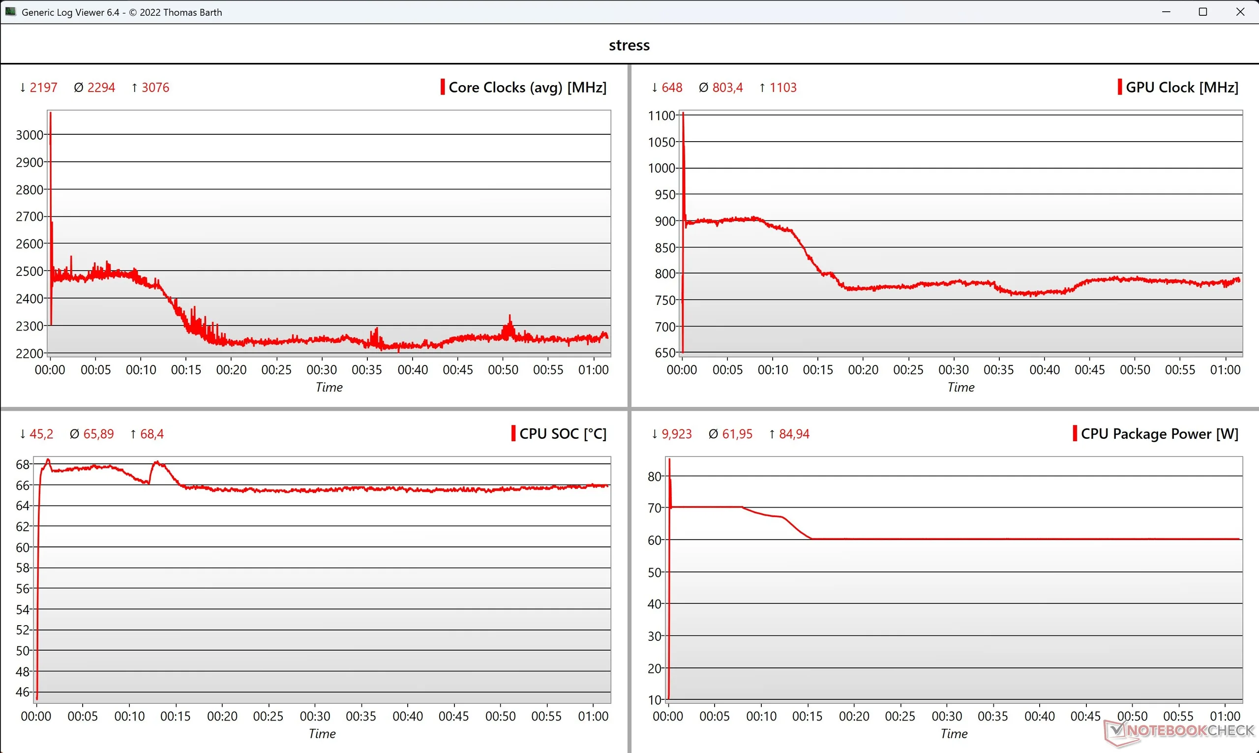 De batterijcapaciteit blijft onveranderd op 73 Wh en de geregistreerde looptijden zijn iets beter vergeleken met de oude PX13. Bij 150 nits duurt onze Wi-Fi-test bijna 9,5 uur, wat duidelijk beter is dan de meeste concurrenten. Bij maximale SDR-helderheid is de looptijd van 7,5 uur meer concurrerend.
