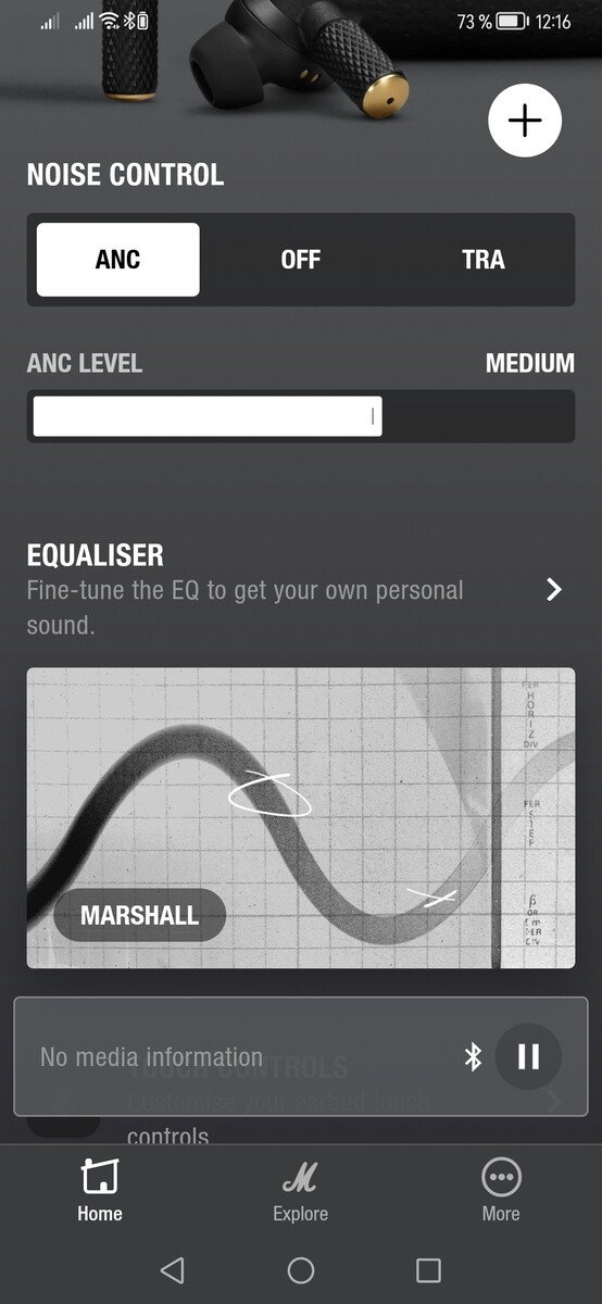 De app zelf is zeer duidelijk en functioneel gestructureerd. ANC en transparantiemodus kunnen in drie stappen worden aangepast (Laag, Midden, Hoog). Verder hebt u toegang tot een equalizer waarmee u, naast het ingestelde Marshall-geluid en verschillende andere voorinstellingen, handmatige aanpassingen kunt maken. Hier kunt u ook ten minste één van de aangepaste aanraakacties naar wens instellen. Vervolgens hebt u de mogelijkheid om het volume via aanraakaanwijzingen te regelen. Helaas betekent dit dat u de functie verliest om te kunnen schakelen tussen ANC en transparantiemodus. De ontwikkelaars hadden hiervoor beter de Spotify-aanraakopdracht kunnen gebruiken, want wij zouden deze functie veel liever achterwege laten.