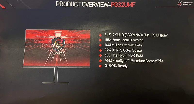 ASRock heeft zijn licht laten schijnen op de PG32UMF, een aankomende gaming monitor. Getoond op Computex 2023 samen met de PG558KFvertrouwt de PG32UMF op een 31,5-inch IPS paneel met een vlakke afwerking. Volgens ASRock heeft het paneel een natuurlijke resolutie van 4K (3.840 x 2.160) met een typische piekhelderheid van 600 nits. De monitor is echter ook VESA DisplayHDR 1400 gecertificeerd, wat betekent dat hij in sommige scenario's 1.400 nits zou moeten kunnen halen.