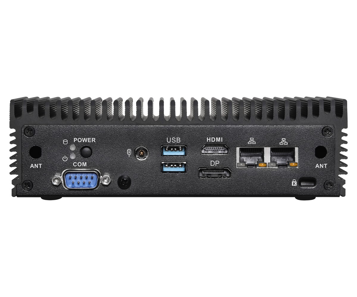 De poortkeuze aan de voorzijde biedt een USB4 aansluiting met DisplayPort 2.1 modus, een USB-C 3.2 Gen 2 met DP 1.4a-modus, 2x USB-A 3.2 Gen 2, 2x USB 2.0 en een audio-aansluiting, terwijl de achterzijde nog eens twee USB-A 3.2 Gen 2, een HDMI 2.0b, een DP 1.4a, een COM-connector en dubbele 2,5 Gbe-aansluitingen bevat (één met Intel vPro en ATM). De audio codec wordt geleverd via Realtek's ALC256 hi-def processor. Een TPM 2.0 IC is ook voorzien voor Windows 11 compatibiliteit. Met de vinnen bovenop heeft het chassis een vrij compact profiel van slechts 5 cm en weegt het systeem 1,6 kg.