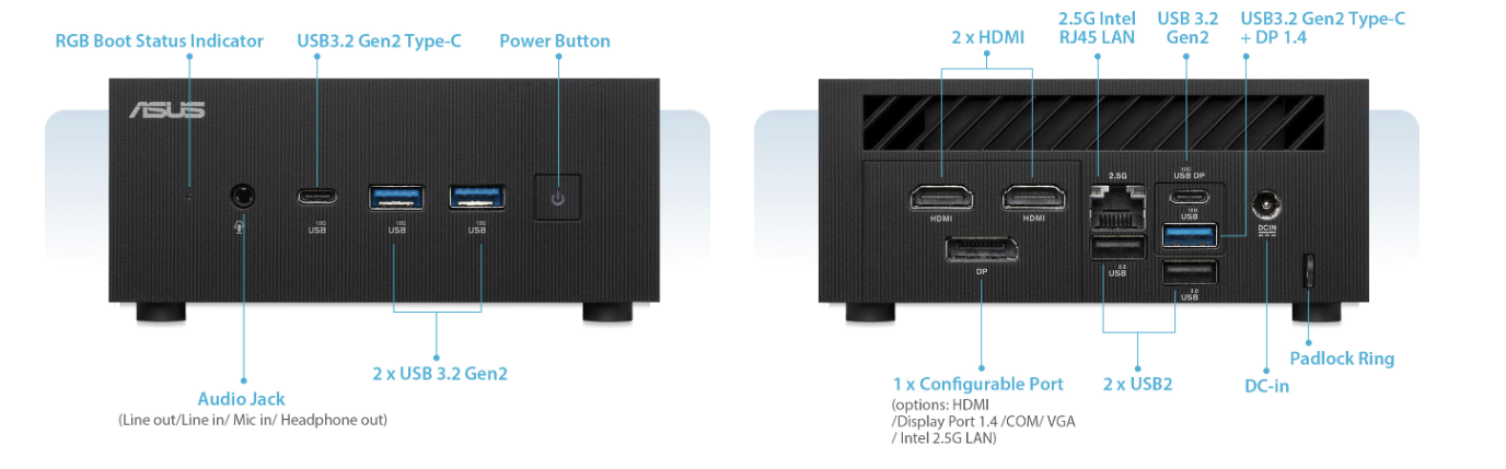 - 2.5 Gigabit Ethernet/DisplayPort 1.4/HDMI/RS-232 COM/VGA)
