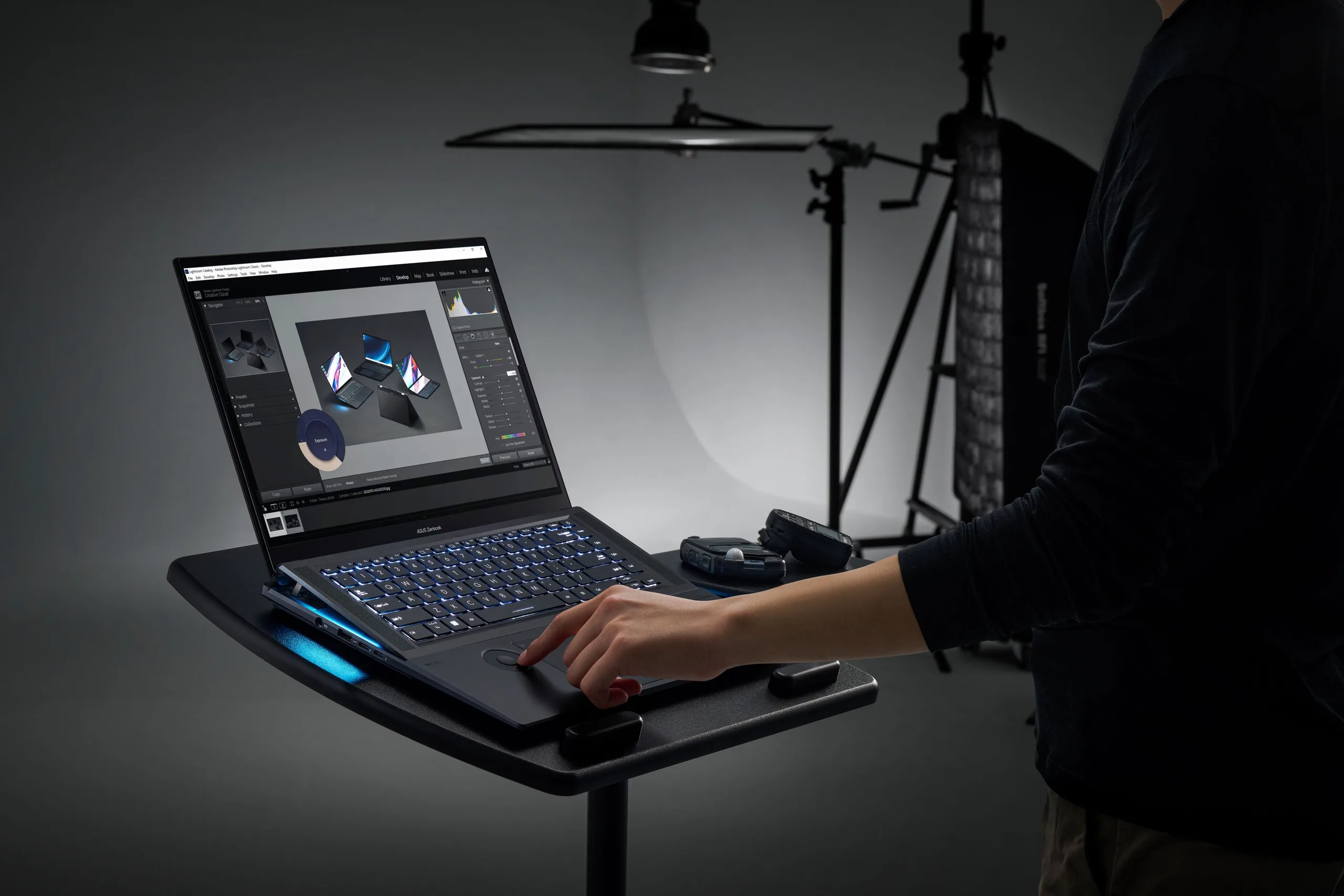 Verder heeft de Zenbook Pro 16X OLED een 16-inch OLED-scherm dat werkt met 3.840 x 2.60 pixels in een 16:10 beeldverhouding. Bovendien biedt het paneel 550 nits piekhelderheid, een responstijd van 0,2 ms en 100% dekking van de DCI-P3 kleurruimte. Dienovereenkomstig is het scherm VESA DisplayHDR True Black 500 gecertificeerd en PANTONE geverifieerd, terwijl ASUS prat gaat op een 90% screen-to-body ratio. Elders beschikt de Zenbook Pro 16X OLED over 32 GB LPDDR5 RAM, een 2 TB PCIe 4.0 SSD, vier luidsprekers en de volgende poorten:
