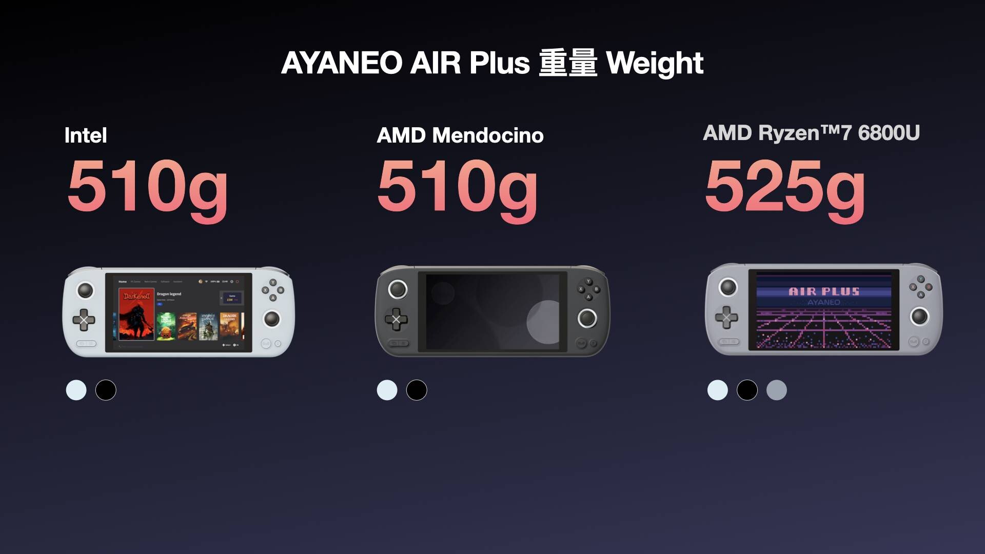 Tot slot is er de AIR Plus met eenRyzen 7 6800U, 32 GB RAM en 2 TB opslag voor US$1,179. Overigens, AYA NEO heeft de naamRyzen 7 6800Umodellen de AIR Plus 'Advance Version' en niet alleen de AIR Plus. Ter referentie, Advance Version-modellen zijn zwaarder en hebben sneller LPDDR5-6400 RAM, vergeleken met het LPDDR5-5500 RAM in AMD Mendocino-modellen en LPDDR5-5200 in de Core i3-1215U. Alle andere specificaties zijn identiek: