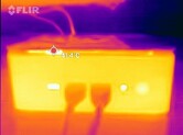 AcePC rust de Wizbox AI mini PC uit met een koelsysteem dat een kleinere ventilator aan de knop bevat die koele lucht aanzuigt om het RAM en de SSD's te ventileren, evenals een grotere heatsink met 2 heatpipes en een grotere ventilator om de processor aan de bovenkant te koelen. Uiteraard worden de hogere temperaturen geregistreerd onder de bovenkap. In rusttoestand ligt de hotspot van de bovenklep op iets meer dan 40o C, terwijl deze in gemiddelde belasting 41,4o C bereikt en de stresstest de temperatuur opvoert tot 62,2o C. De gemiddelde temperatuur van de behuizing bedraagt 32,45o C in rusttoestand en ongeveer 34,25o C in de stresstest. Daarnaast is de temperatuur van de CPU-pakketten 50o C in rust en 62o C in gemiddelde belasting.