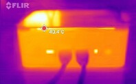 (+) Bij onbelast gebruik bedraagt de gemiddelde temperatuur voor de bovenzijde 30.6 °C / 87 F, vergeleken met het apparaatgemiddelde van 32.5 °C / 91 F.