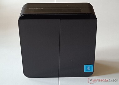 Vergeleken met andere mini PC's met vergelijkbare prestaties, heeft de AcePC Wizbox AI een relatief grotere en zwaardere behuizing van 147 x 147 x 55,55 mm (5,79 x 5,79 x 2,19 inch). Het ontwerp is strak en minimalistisch, met een metalen chassis ingeklemd tussen een stevige plastic boven- en onderkant. AcePC biedt dit model alleen in het zwart aan en gebruikers kunnen kiezen voor een matte of glanzende bovenkant. Zonder de meegeleverde 120 W voeding weegt de mini PC 840 g (1,85 lbs).