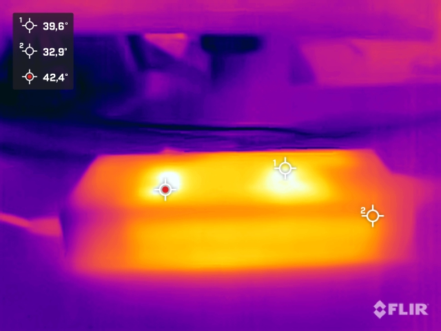 (+) Bij onbelast gebruik bedraagt de gemiddelde temperatuur voor de bovenzijde 31.8 °C / 89 F, vergeleken met het apparaatgemiddelde van 32.5 °C / 91 F.