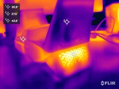 (+) Bij onbelast gebruik bedraagt de gemiddelde temperatuur voor de bovenzijde 28.5 °C / 83 F, vergeleken met het apparaatgemiddelde van 32.5 °C / 91 F.