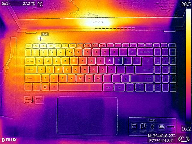 De laptop heeft één uitlaat aan de achterkant, wat voldoende is voor de enige ventilator om de overtollige warmte af te voeren. Acer heeft zelfs een stroom- en oplaad-LED aan de zijkant geplaatst, vlak naast de 3,5 mm audio-aansluiting.