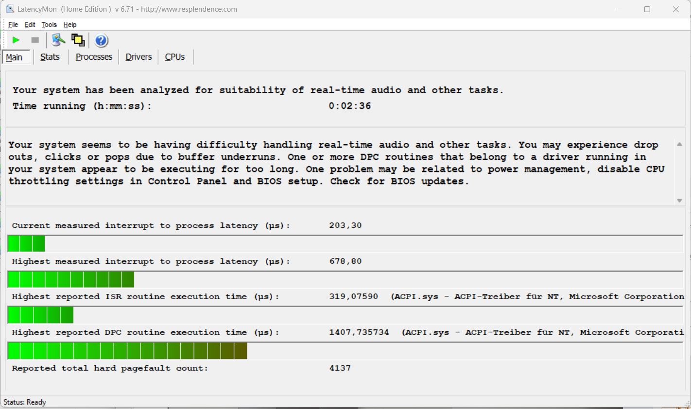 Onder belasting (stresstest, Witcher 3) produceert de computer niet al te veel warmte. Af en toe worden waarden van 40 graden Celsius bereikt. Bij dagelijks gebruik (kantoor, internet) blijven de waarden binnen het groene bereik.