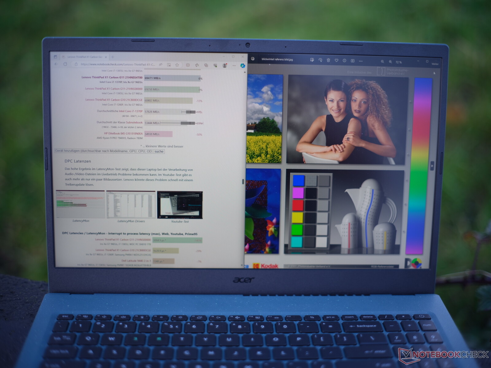 Dankzij het kleinere 13,5" scherm met een resolutie van 2,3K, is deFramework Notebookhet beeld scherper en wordt het nadeel van een kleiner scherm enigszins verzacht door het feit dat het een kantoorvriendelijke beeldverhouding van 3:2 heeft. DeHP Envy x360 15en deAsus VivoBook S15bieden daarentegen de beste contrastwaarden en bijna volledige AdobeRGB-dekking dankzij hun OLED-technologie.
