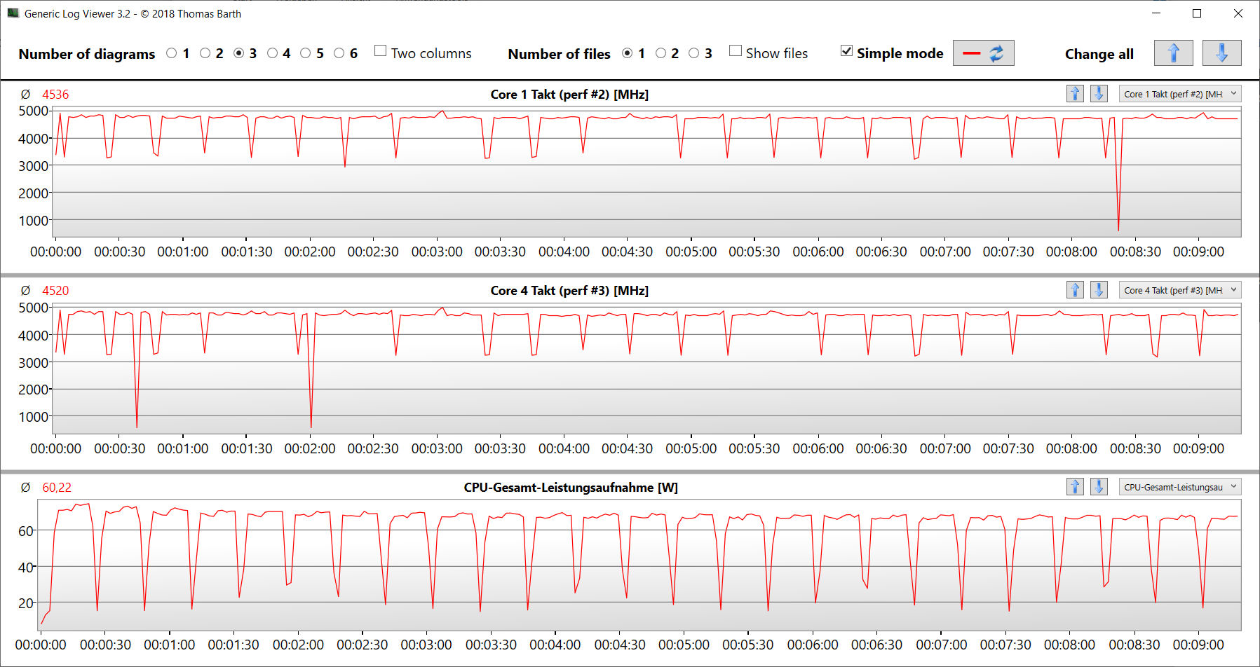 | CPU-klok (GHz) | GPU-klok (MHz) | Gemiddelde CPU-temperatuur (°C) | Gemiddelde GPU-temperatuur (°C) | |