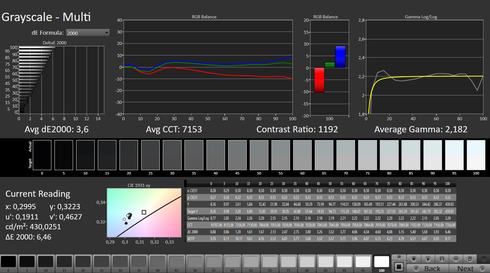 ΔE Greyscale Calman: 3.6 | ∀{0.09-98 Ø5}
