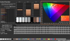 Het scherm toont een fatsoenlijke kleurweergave af-fabriek - met een afwijking van ongeveer 4,7 wordt het doel (DeltaE < 3) niet precies gehaald. Een kalibratie brengt de afwijking terug tot 2,68 en zorgt voor evenwichtigere grijstinten. Het paneel kan het sRGB kleurengamma volledig reproduceren, maar niet de Adobe RGB en Display P3 kleurruimten.