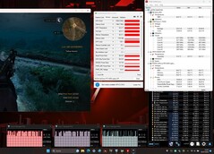 De stresstest (Prime95 en Furmark in continu bedrijf) is een extreem scenario om de stabiliteit van het systeem onder volledige belasting te testen. De CPU begint de stresstest met kloksnelheden van 4,1 tot 4,2 GHz, de grafische kern draait op 2,3 tot 2,4 GHz. De snelheden dalen naar 2,6 GHz (processor) en 2,2 GHz (grafische kern) in het verdere verloop van de test.