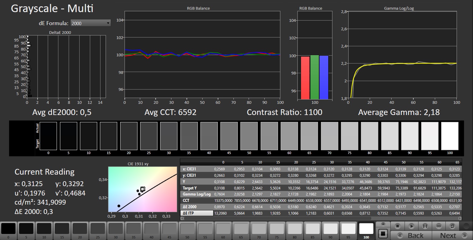 ΔE Greyscale Calman: 2.4 | ∀{0.09-98 Ø5}