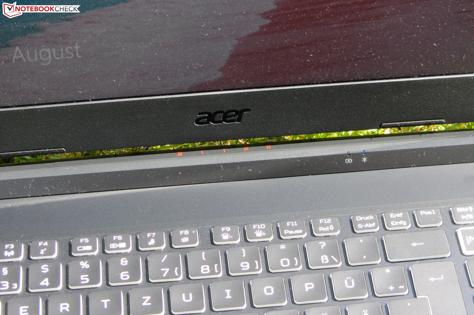 De gehele behuizing van de Nitro 5 is gemaakt van matzwart plastic. Afgezien van de RGB toetsverlichting, voegen het wijnrode gebied tussen de achterste ventilatieopeningen en het rode "Nitro" logo op het scharnierdeksel wat kleur toe. De gladde oppervlakken van het chassis blijken nogal gevoelig te zijn voor vingerafdrukken. Er is geen onderhoudsluikje, en de batterij is stevig in het apparaat ingebouwd.