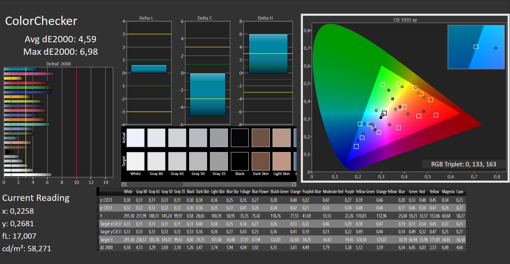 ΔE ColorChecker Calman: 4.59 | ∀{0.5-29.43 Ø4.78}