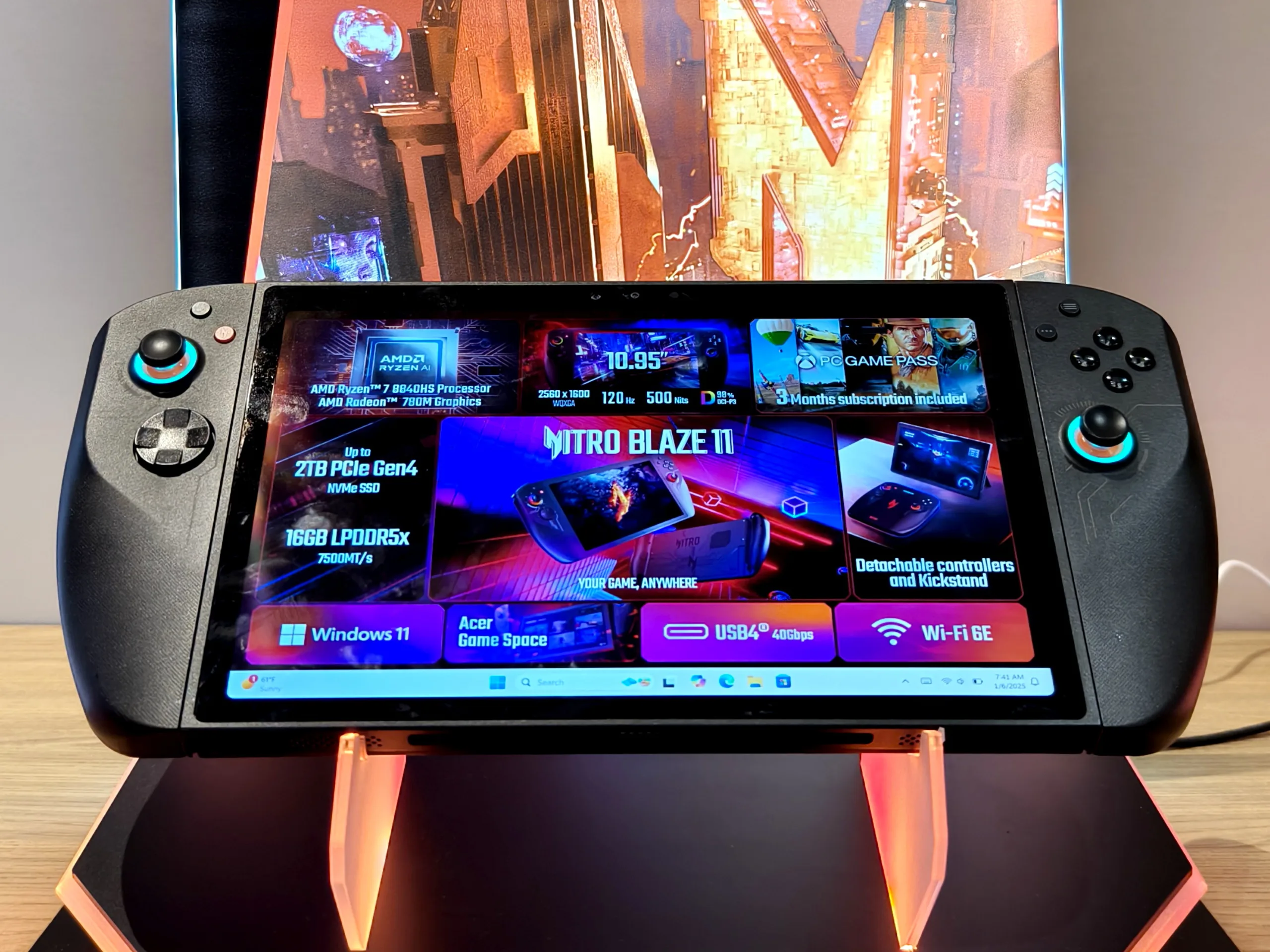 De Acer Nitro Blaze is een vrij alledaagse Windows gaming handheld, verwant aan de originele Asus ROG Ally, met een 8,8-inch IPS-scherm dat met 144 Hz wordt vernieuwd. De 8,8-inch gaming handheld wordt aangedreven door de eerbiedwaardige AMD Ryzen 7 8840HS en Radeon 780M iGPU, die geen van beide bijzonder traag zijn, ook al beginnen ze nu hun leeftijd te tonen. De combinatie van processor en iGPU bestaat uit 16 GB LPDDR5x-7500 RAM, wat meer dan snel genoeg zou moeten zijn om maximale prestaties van de iGPU te garanderen.