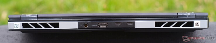 De Acer gaming laptop heeft talloze poorten, waaronder 5x USB. Aan de linkerkant zit 1x USB-A 3.1 (5 GBit/s), aan de rechterkant 2x USB-A 3.2 (10 GBit/s) en aan de achterkant 2x Thunderbolt 4 met DisplayPort 1.4 en Power Delivery (100 watt). De laptop bevat ook Gigabit Ethernet, een microSD-kaartlezer, een 3,5 mm audio-aansluiting, een Kensington-slot, HDMI 2.1 en de oplaadconnector.