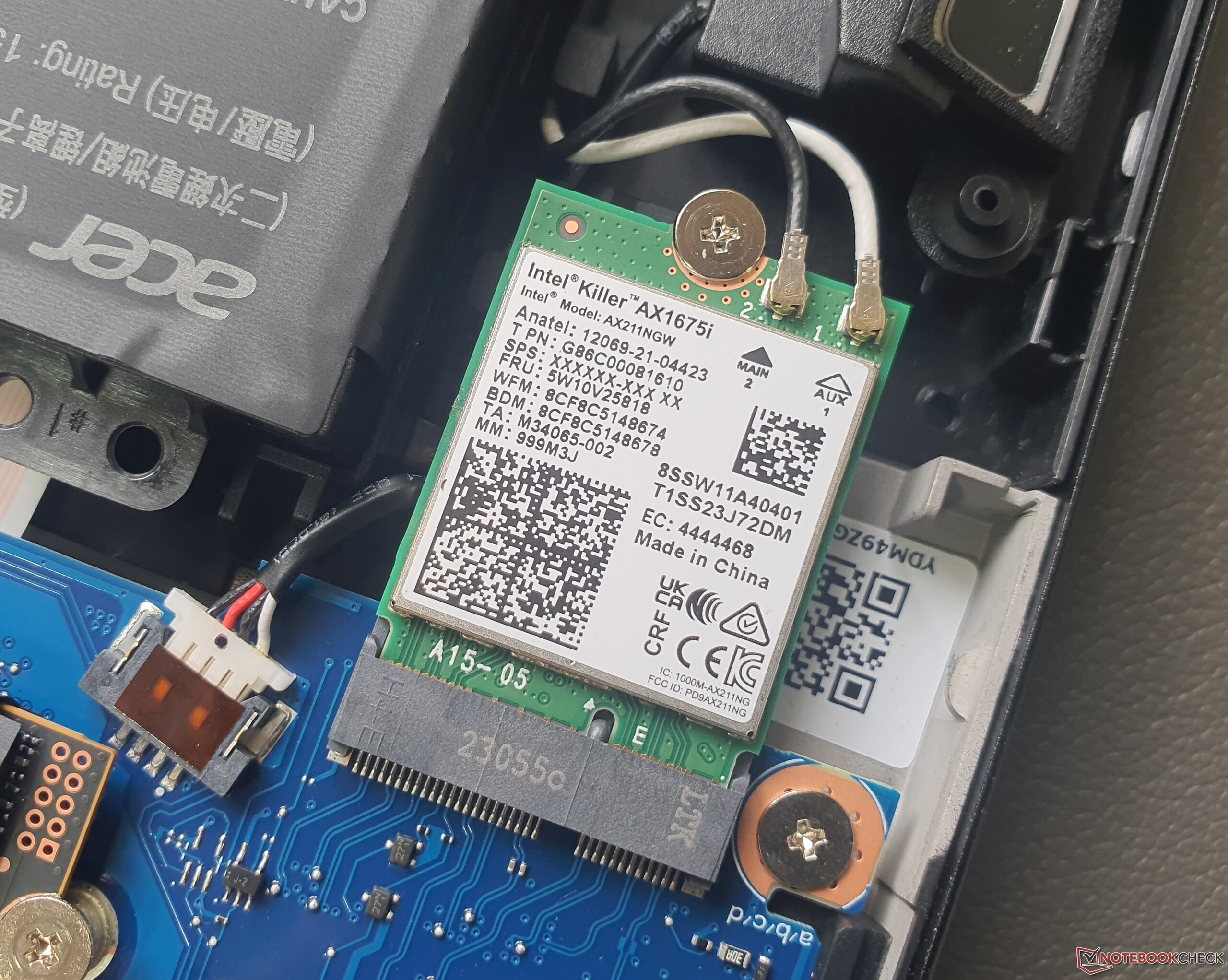 De Intel Killer AX1675i Wi-Fi 6E-chip is verantwoordelijk voor de draadloze netwerkoverdracht en werkt met een topsnelheid tot 1,6 GBit/s. Dit is sneller dan de geïnstalleerde Gigabit RJ45-poort (Killer 2600) toelaat, omdat deze geen 2,5 GBit/s ondersteunt.Legion Pro 5 16en deTUF Gaming A16liggen wat achter op de Helios 16. Bluetooth 5.2 is aan boord.
