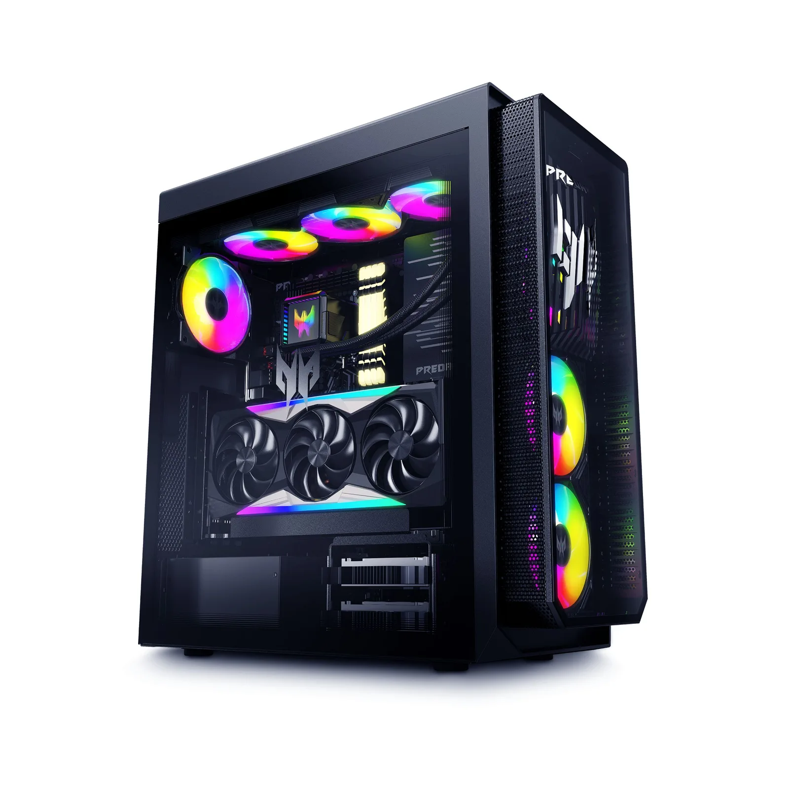U kunt uw Acer Predator Orion 7000 configureren met maximaal een Nvidia GeForce RTX 4090, 32 GB DDR5 6.000 RAM of 128 GB DDR5 5.600 geheugen. De mysterieuze CPU wordt koel gehouden door een Predator Cyclone X 360 mm AIO-koeler. Voor opslag biedt Acer tot 8 TB aan SATA-schijven, 6 TB NVMe SSD's en verwijderbare schijfsleuven om uw eigen SATA SSD's te installeren.