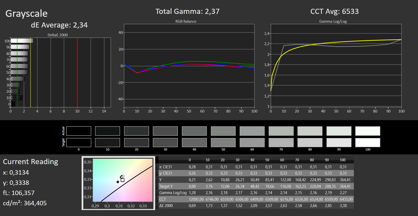 ΔE Greyscale Calman: 2.34 | ∀{0.09-98 Ø5}