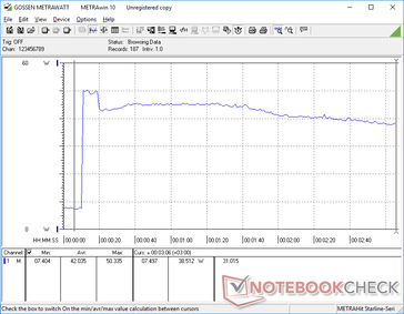 Het stroomverbruik in ruststand is hoger dan op de meeste andere laptops met geïntegreerde GPU's vanwege de hoge 120 Hz verversingsfrequentie en het OLED-paneel van onze Acer-configuratie, waarvan bekend is dat ze meer stroom verbruiken dan de gebruikelijke 60 Hz IPS. Het weergeven van een volledig wit beeld bij 120 Hz zou maar liefst 19 W verbruiken, vergeleken met minder dan de helft op de Framework Laptop 13.5.